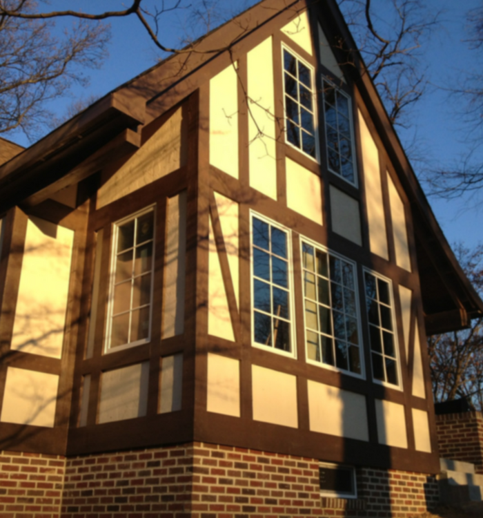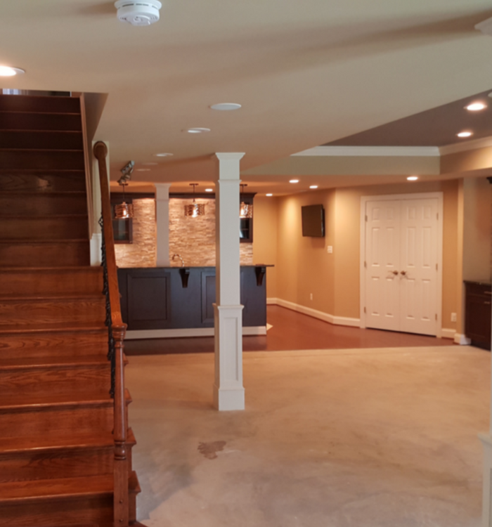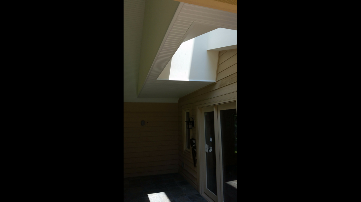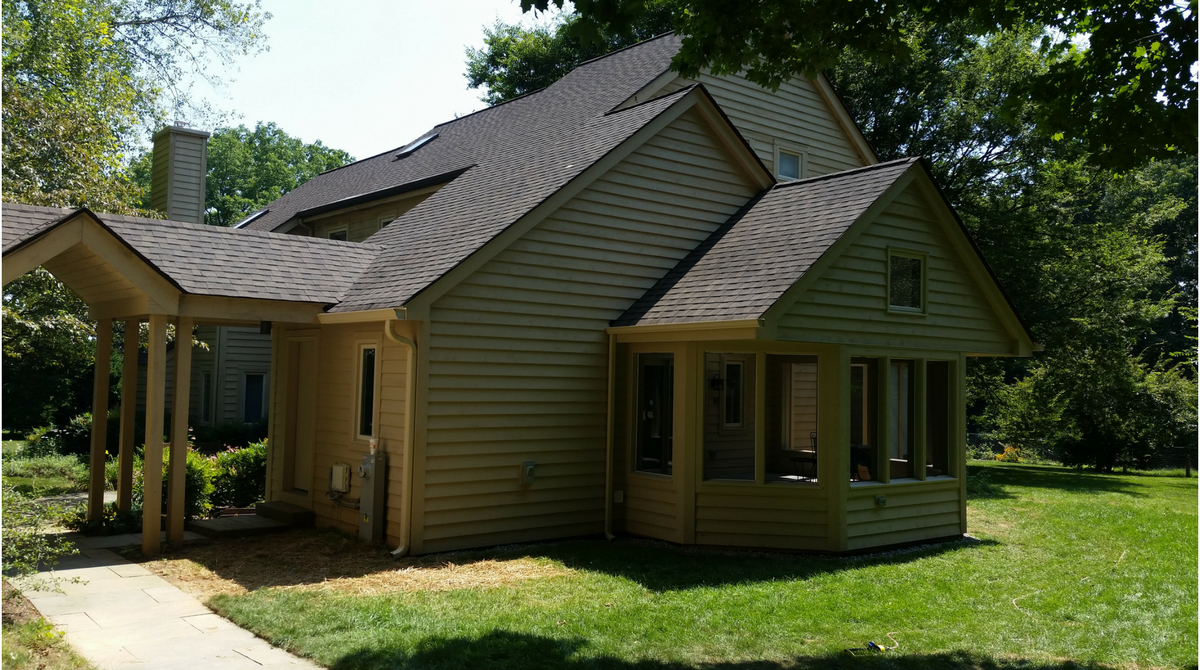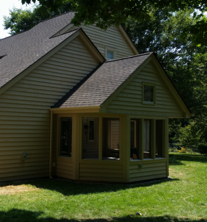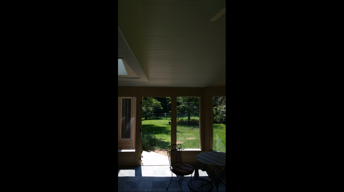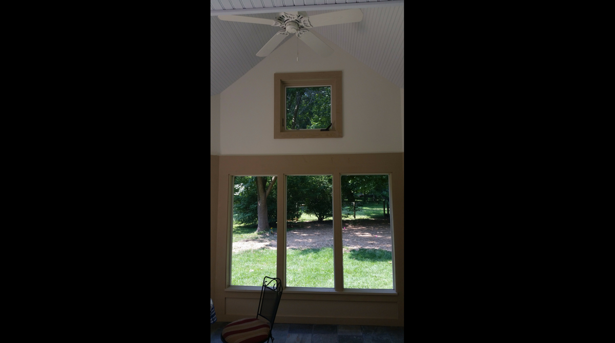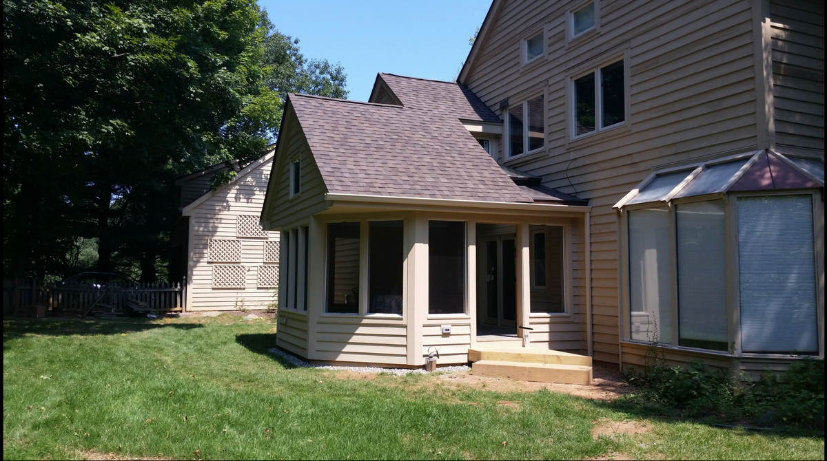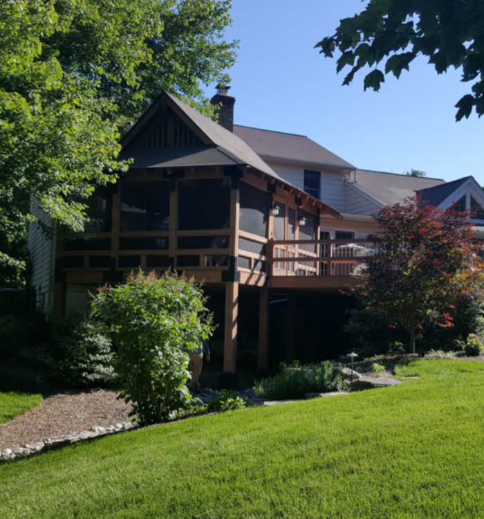 Screened porch with stone floor, cedar siding. Mudroom/laundry room addition.